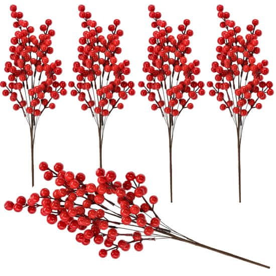 sarcia.eu Okrasna vejica z rdečimi jagodami, okrasna JAREBIKA, božična dekoracija 50 cm 5 kusov