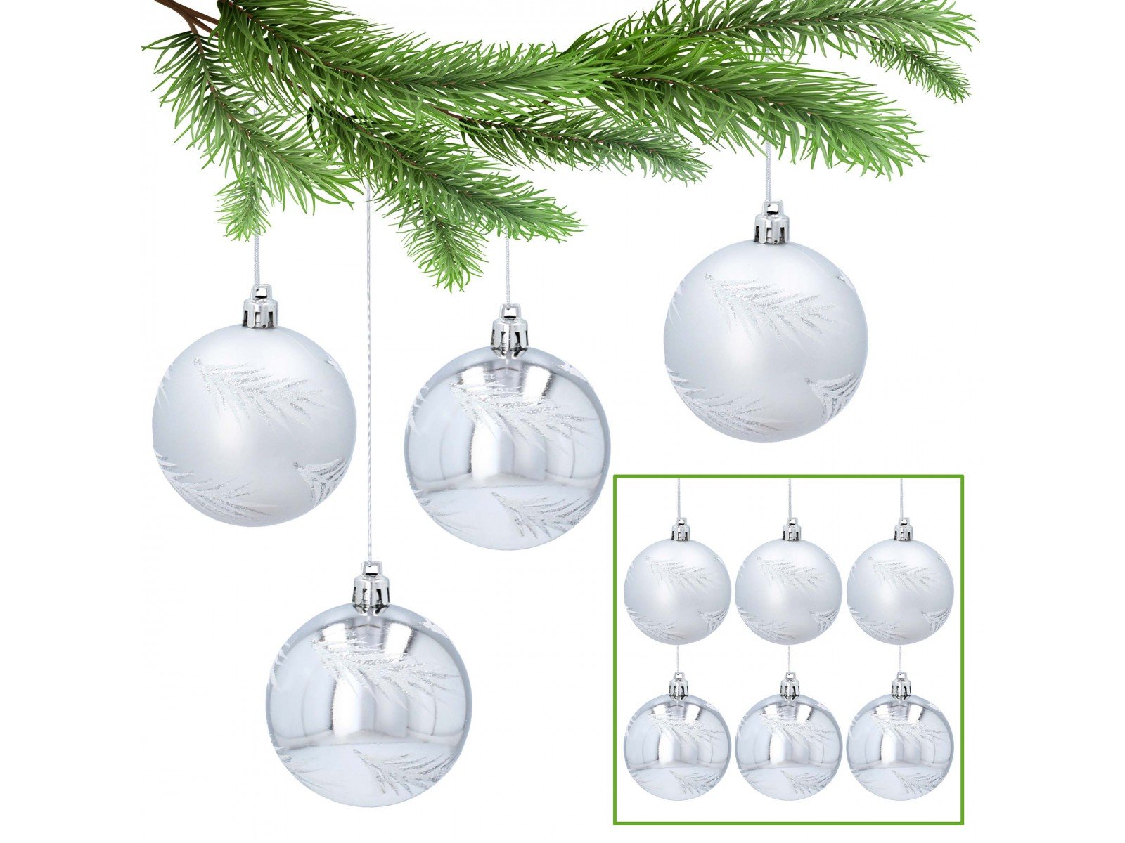 sarcia.eu Srebrne božične kroglice v vzorcu ribje kosti, komplet plastičnih kroglic, božični okraski 7 cm, 6 kosov