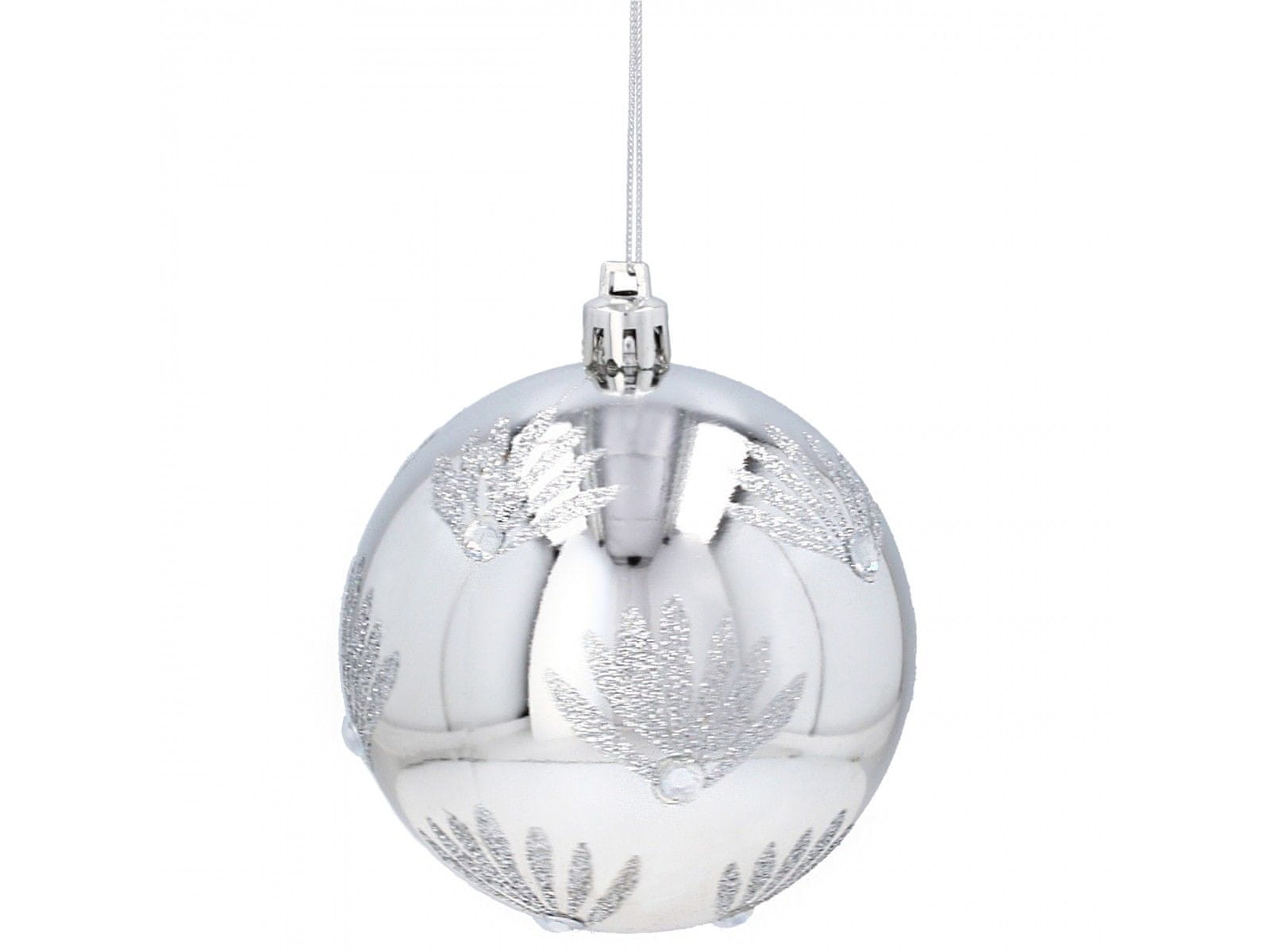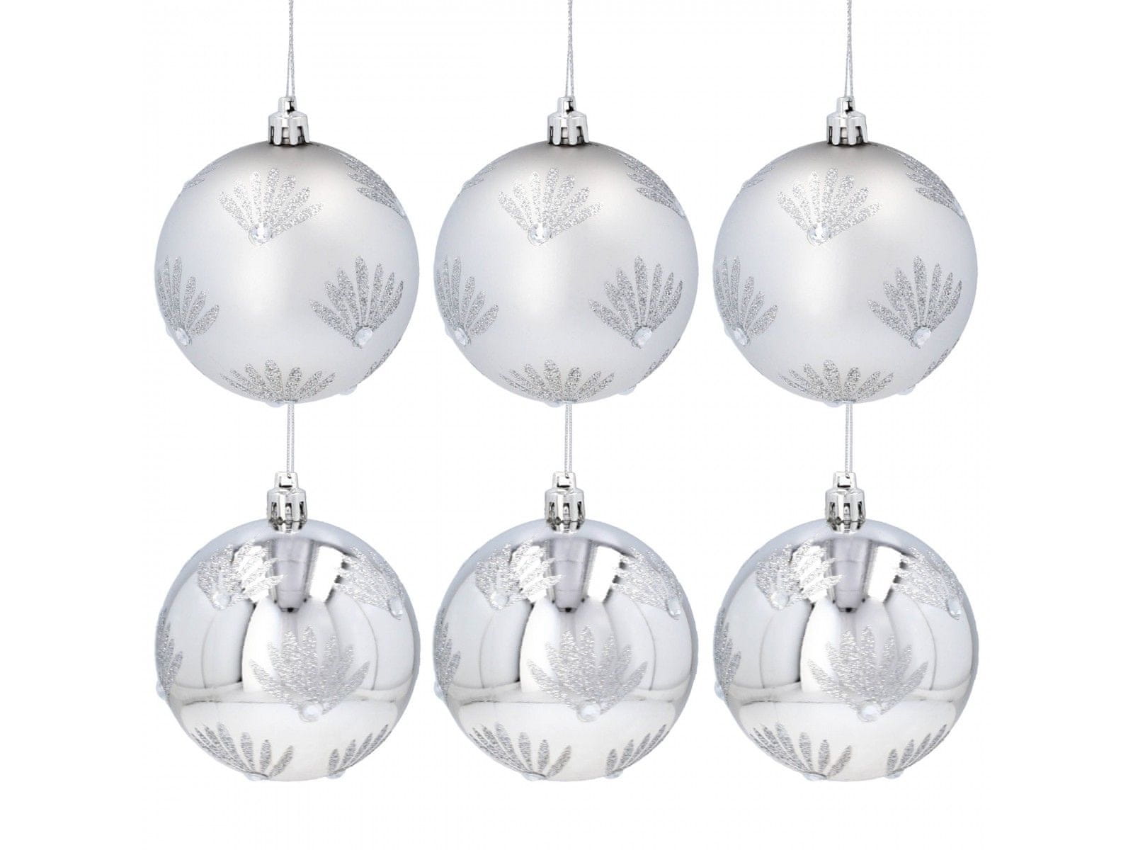 sarcia.eu Srebrne božične kroglice z bleščicami, komplet plastičnih kroglic, božični okraski 8 cm, 6 kosov