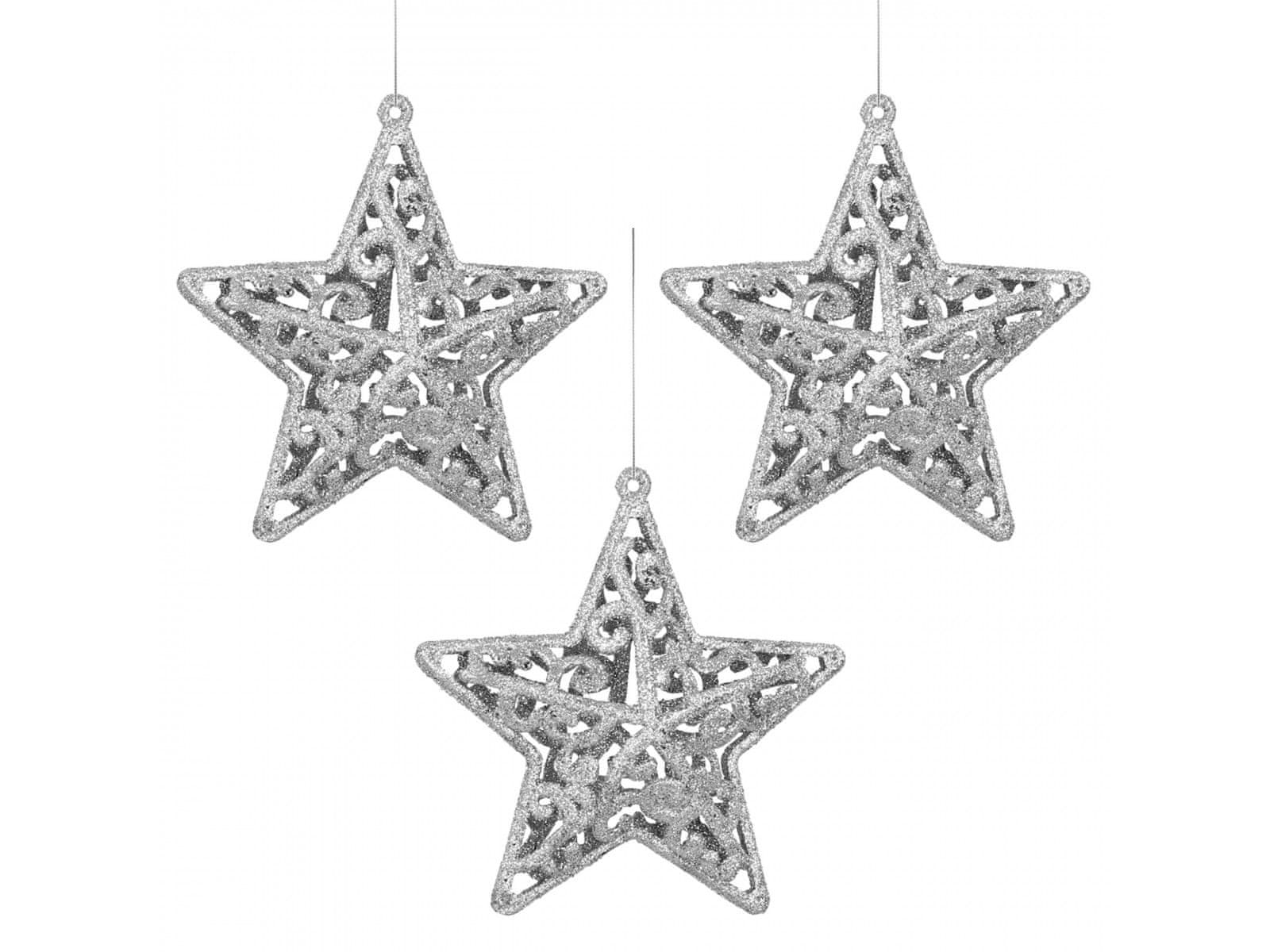 sarcia.eu Srebrni božični okraski z zvezdicami, komplet ažurastih okraskov, okraski za božično drevo 10,5 cm, 3 kosi