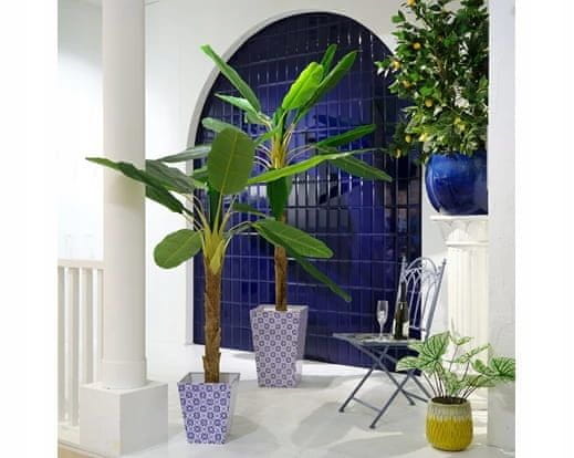 Umetna bananovka v univerzalnem lončku je edinstven in nenadomestljiv okras interierja. Dobro se obnese doma, v hotelih, restavracijah, trgovinah. Ne potrebuje zalivanja ali dostopa do svetlobe. Izdelan iz visokokakovostnega materiala – zahvaljujoč temu rastlina izgleda zelo naravnoin je enostavna za čiščenje. Lonček je izdelan iz plastike.