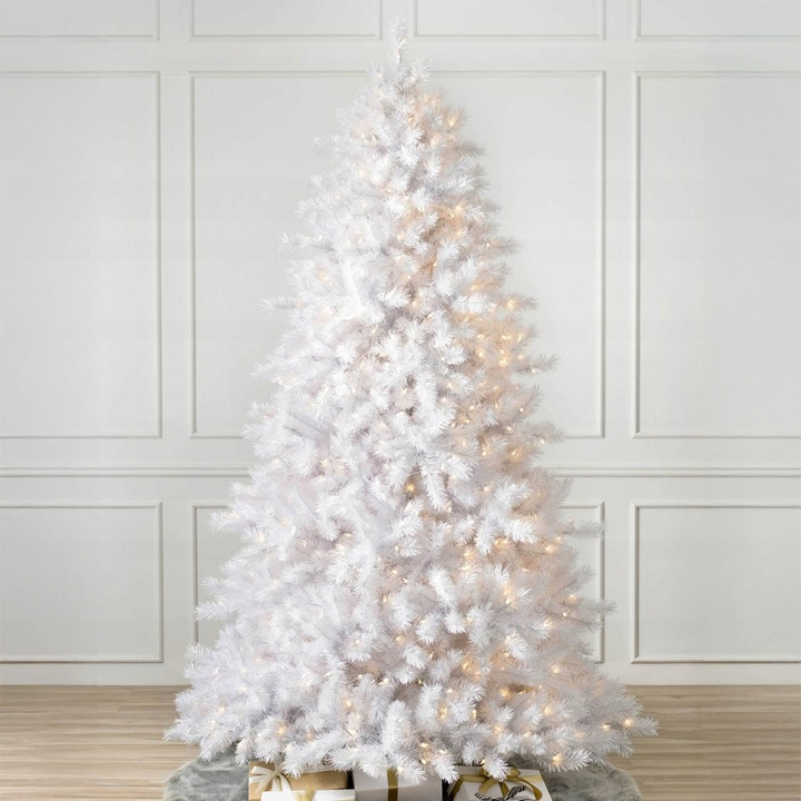 shumee UMETNA BOŽIČNA DREVEČKA IZ BELE SMREKOVE S PODSTAVKOM 220 CM