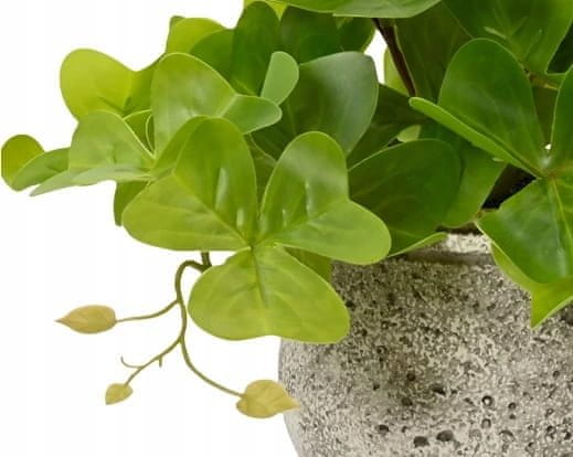 Zelena rastlina v čudovitem okrasnem lončku je edinstven in nenadomestljiv okras interierja. Dobro se obnese doma, v hotelih, restavracijah in trgovinah. Ne potrebuje zalivanja ali dostopa do svetlobe. Izdelana iz visokokakovostne plastike – zaradi tega rastlina izgleda zelo naravno in jo je enostavno čistiti.