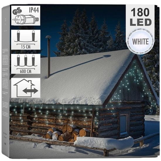 Dolžina in svetlobna moč: Svetlobna zavesa meri 6 m v dolžino in 52 cm v višino. Opremljena je s 180 LED diodami, ki oddajajo hladno belo svetlobo.