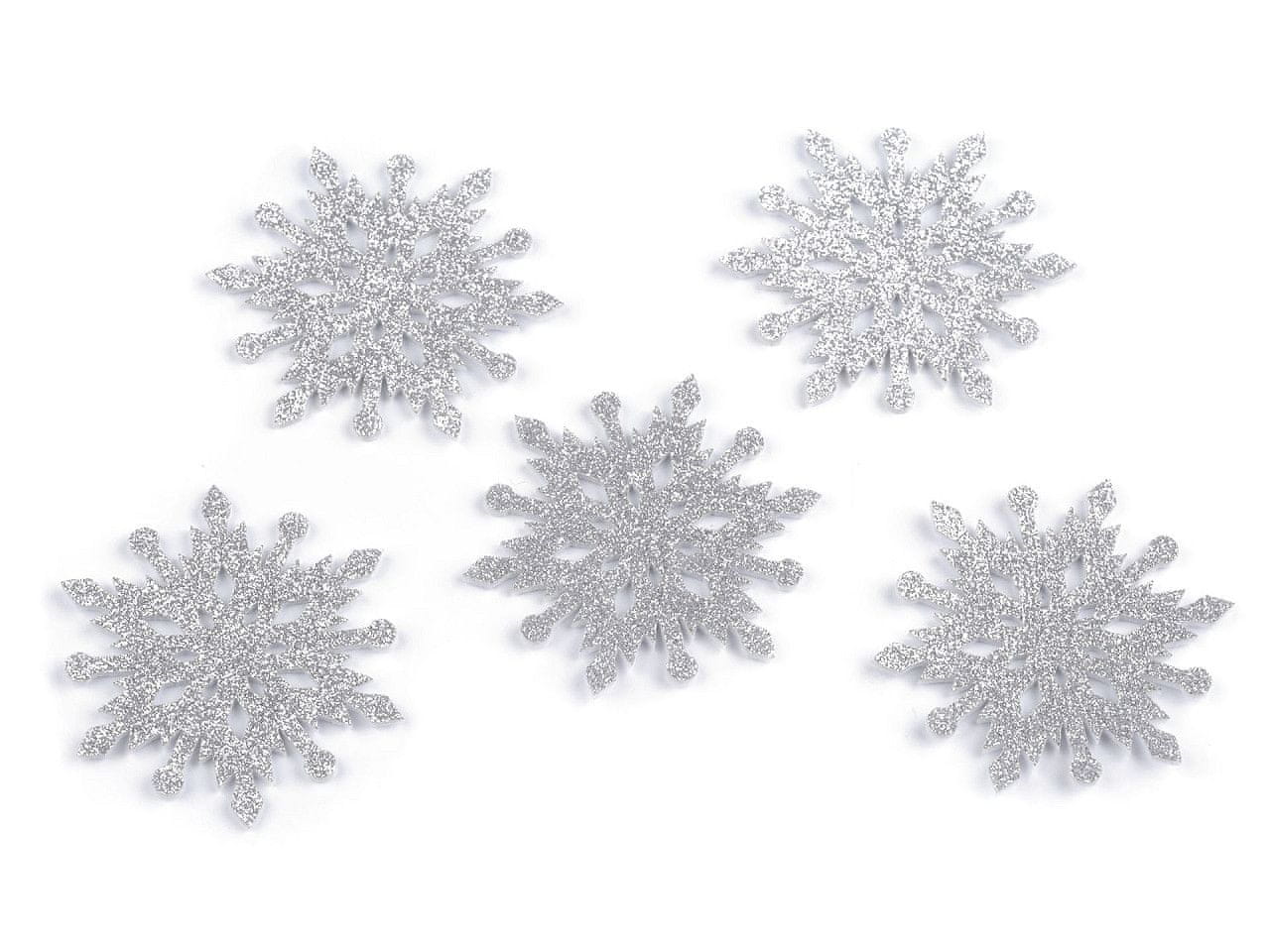 Božična snežinka iz filca z bleščicami Ø75 mm - srebrna (5 kosov)