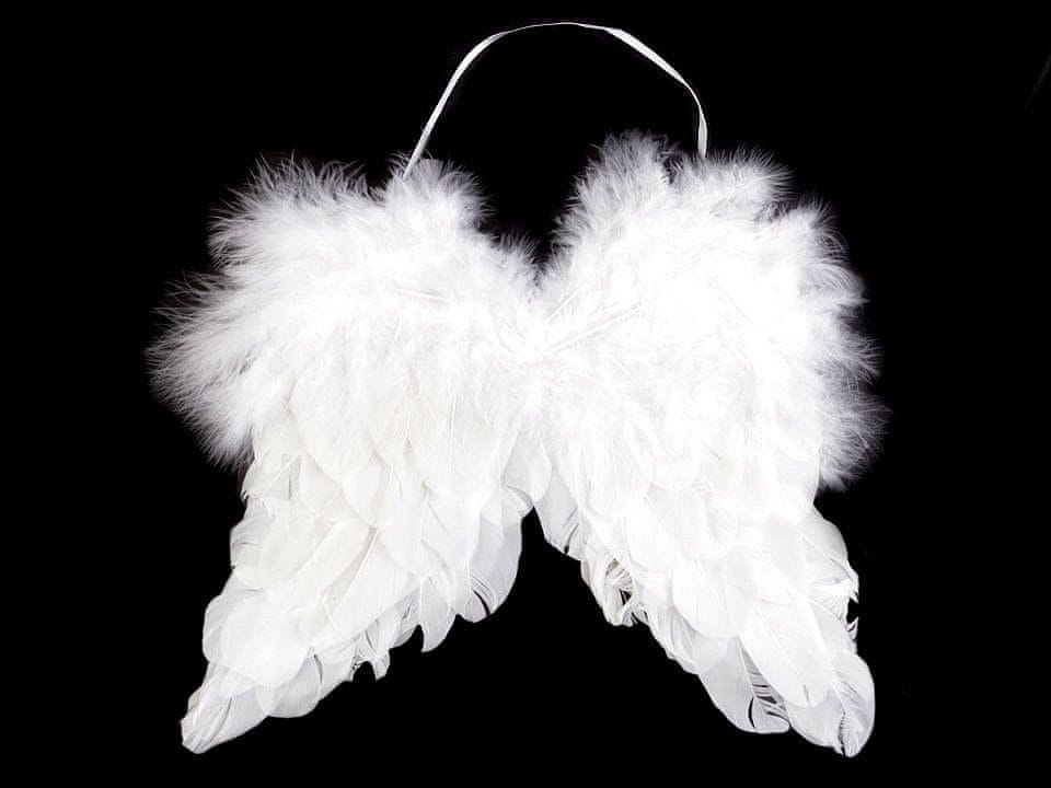 Angelska krila so narejena iz perja, ki je obojestransko prilepljeno na trdi papir. Imajo zanko iz satenastega traku, ki vam omogoča, da jih obesite kot okras na drevo, v okno ali na različne figure.