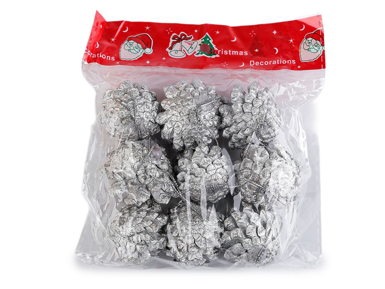 Dekorativne borove storže lahko zaradi zanke obesite na drevo, vence ali veje v vazi. So naravni, dopolnjuje jih kovinska barva, ki jim daje eleganten videz.