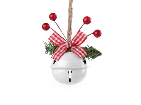 Kovinske zvončke in zvončke uporabite kot božično viseče okrasje. Okrašeni so z vejico, lokom in jagodami na vrhu. Imajo zanko za obešanje, zato jih lahko obesite na drevo, vejo v vazi ali na okrasne girlande in vence.