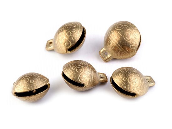 Kovinski zvonci imajo obliko školjke in površino, okrašeno z graviranimi okraski. Njihov čudovit zvok je značilen in jasen. Zvončke lahko med sprehodi pritrdite na ovratnico svojega hišnega ljubljenčka zunaj okrasja.
