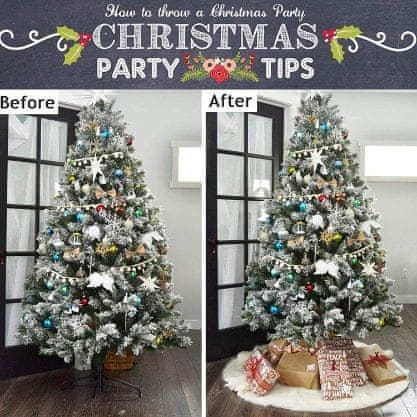 Bela krznena preproga s svojo elegantno zasnovo brez težav ustvari osupljiv zasnežen učinek pod božičnim drevescem. Odlično se ujema z vsemi vrstami božičnih okraskov, zato je vsestranska izbira za vsako božično drevo.