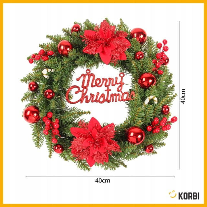 Korbi BOŽIČNI VENEC – ELEGANTNA PRAZNIČNA DEKORACIJA, RDEČ WZ4 40CM