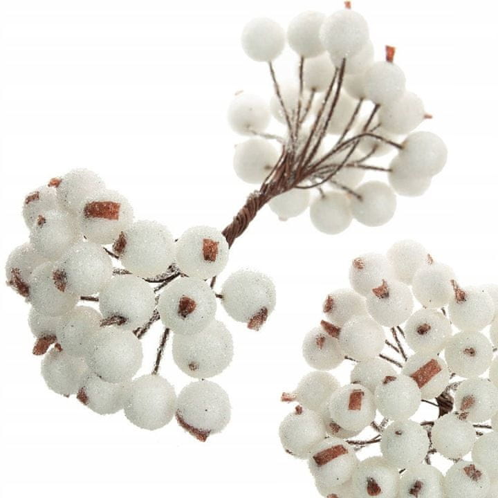 Korbi Zmrznjena jerebika, dekorativna šopka na žici, umetna bela, 20 kosov, božična dekoracija