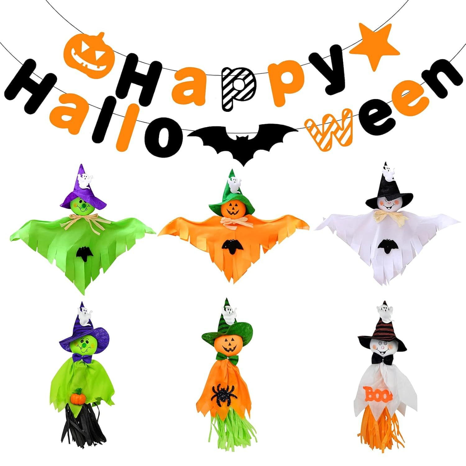 DEKORACIJE ZA ZABAVO ZA NOČ ČAROVNIC GIRLANDE DUHOVI ČAROVNICE BARVNA VISEČA ZABAVA Celoten opis