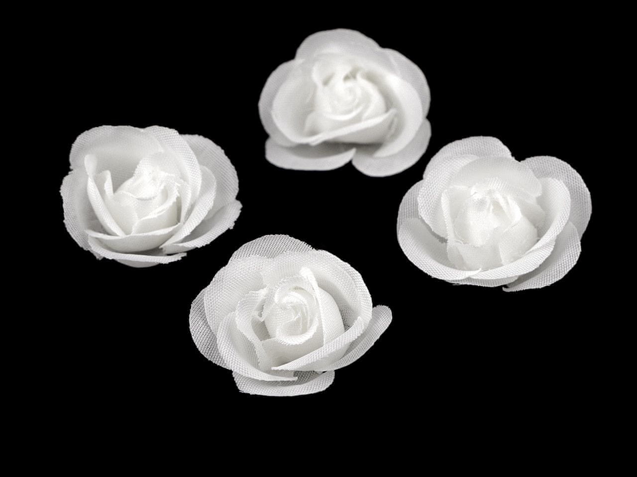 Tekstilni cvet vrtnice Ø3 cm - bel (10 kosov)