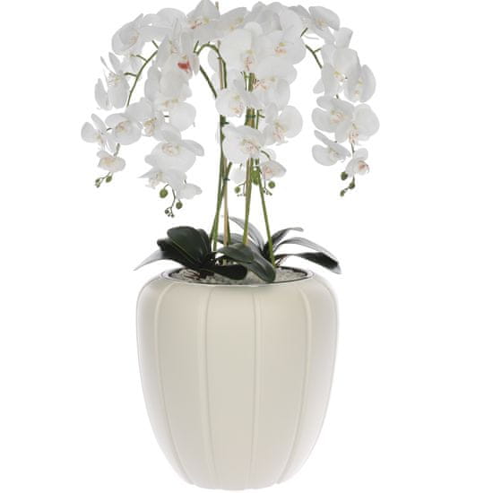 Umetna orhideja v čudovitem lončku je eleganten dodatek, ki bo v vaš interier vnesel subtilen čar narave. Popoln za dekoracijo stanovanj, hiš, dnevnih sob, pisarn ali pisarn. Postavite ga lahko tudi na teraso, balkon ali zimski vrt. To je popolna ideja za darilo.