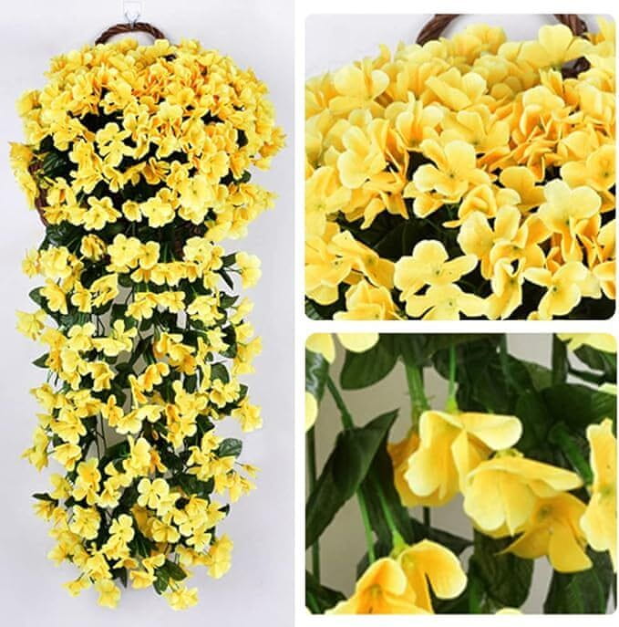 HOME & MARKER® Umetne rože, Umetno cvetje, Umetne cvetlične viseče rože, Viseči šopek (Rumena, 4 x 72 x 77 cm) | HANGROSE