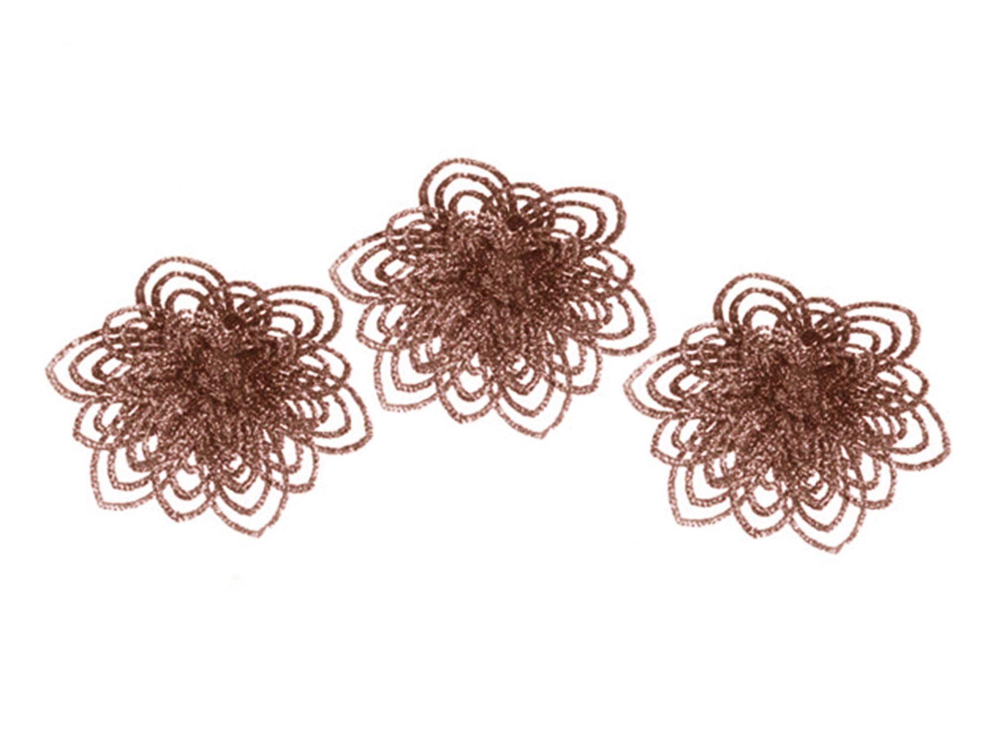 Komplet 3 okraskov v obliki rož v rjavi barvi.