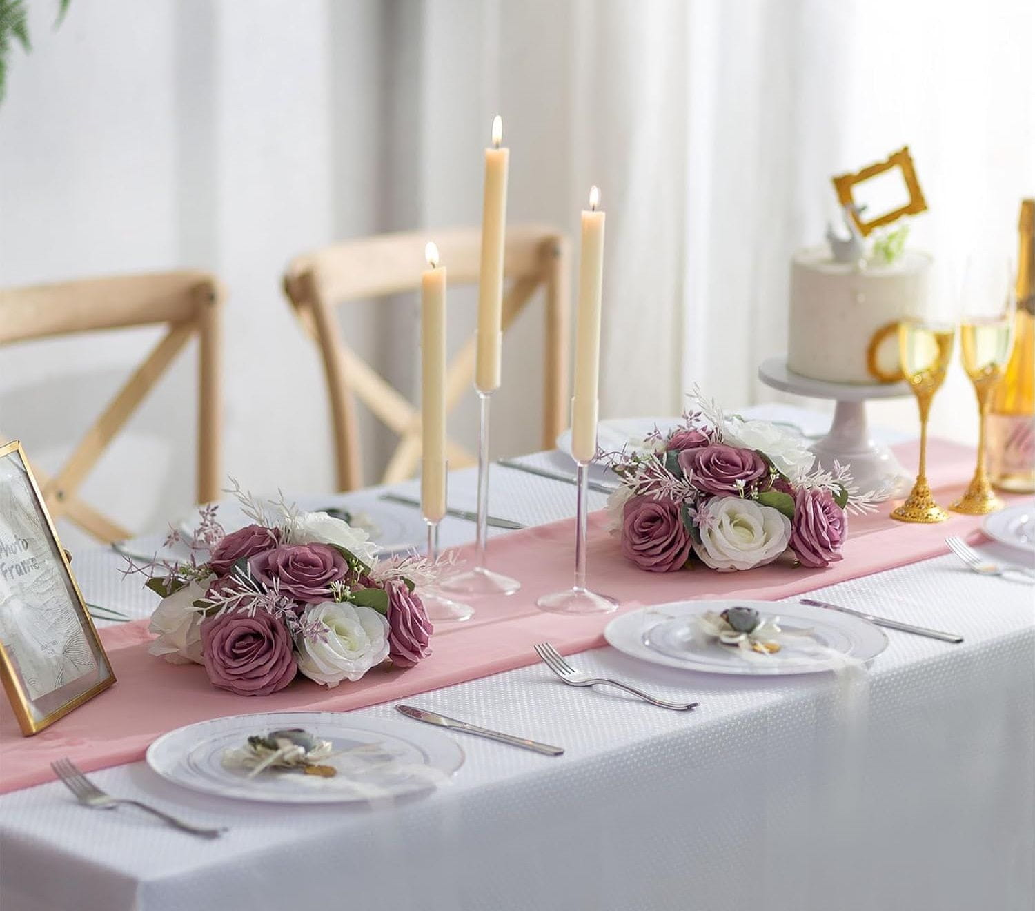 Set umetnih vrtnic ponuja čudovite in realistične cvetlične kompozicije, ki so zasnovane za popestritev različnih dogodkov in prostorov. Te kompozicije so idealne za uporabo kot osrednji okras na porokah, zabavah, valentinovem ali kot trajna dekoracija v vašem domu. Izdelane so iz visokokakovostne svile, dopolnjene z majhnimi belimi cvetovi in umetno travo, kar jim daje videz svežih rož. Zaradi svoje vsestranskosti omogočajo uporabo v različnih dekorativnih aranžmajih.