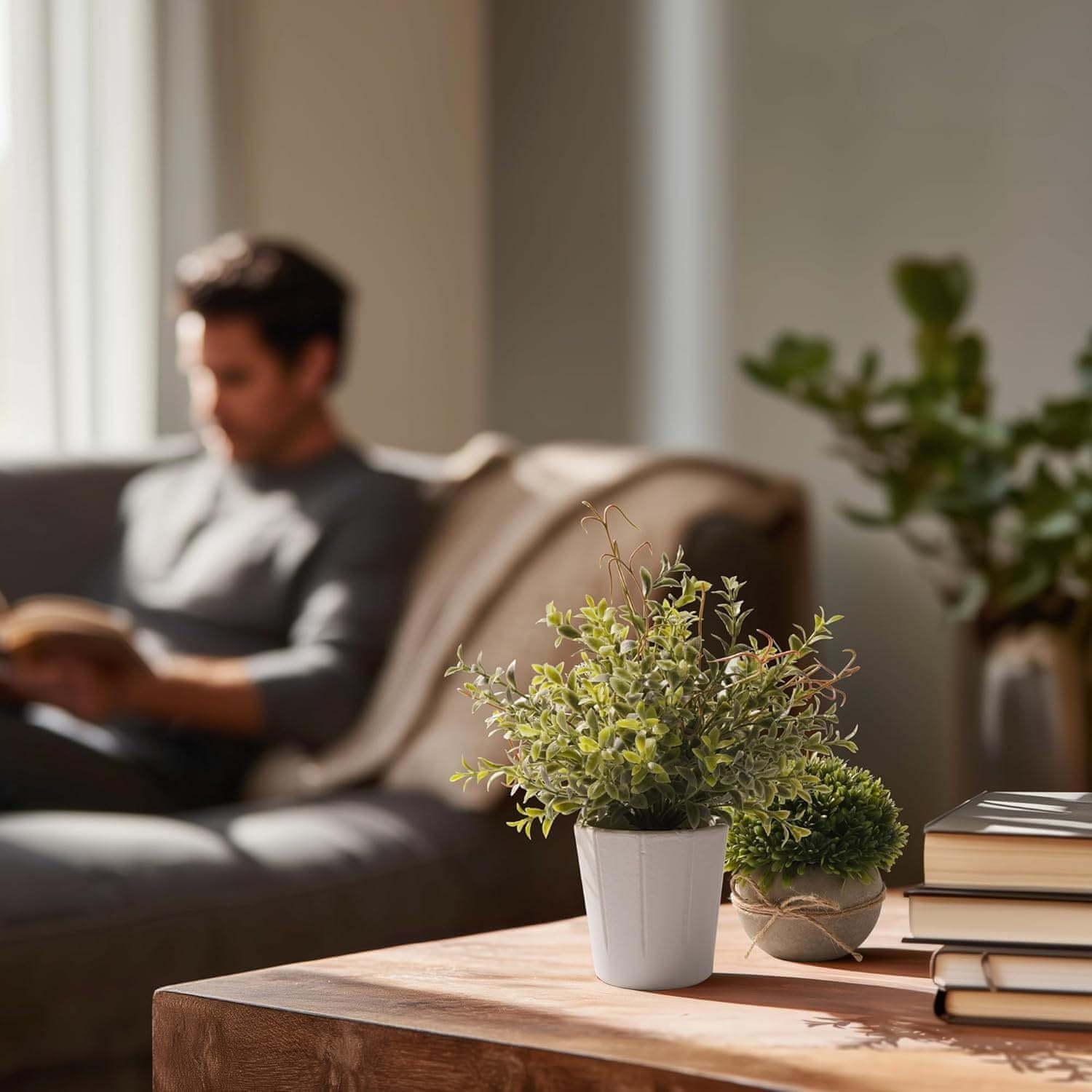 Umetne rastline v okrasnih lončkih so praktičen in eleganten način za oživitev prostora. Zahvaljujoč kompaktnim dimenzijam in naravnemu videzu bodo v interier vnesle svežino in harmonijo — brez truda in nege. Ne odlašajte in obogatite svoj dom s tem brezčasnim dekorativnim setom še danes.