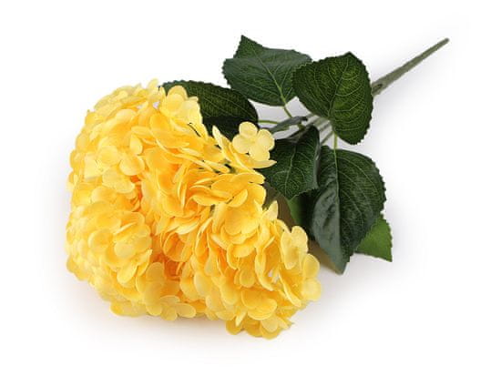 Umetni šopek hortenzij navdušuje s svojim realističnim videzom in natančno izdelavo. Izstopal bo v vazah ali vključen v cvetlične aranžmaje. Sestavljen je iz 5 stebel z bogatim socvetjem. V notranjosti vsakega stebla je žica. Posamezne cvetove lahko uporabite kot dekoracijo za vence za lase. Premer enega socvetja je približno 12 cm.