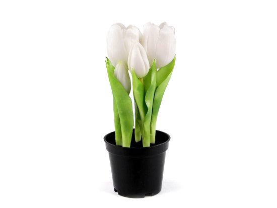 Umetni tulipani v loncu so videti zelo realistično. Celoten opis