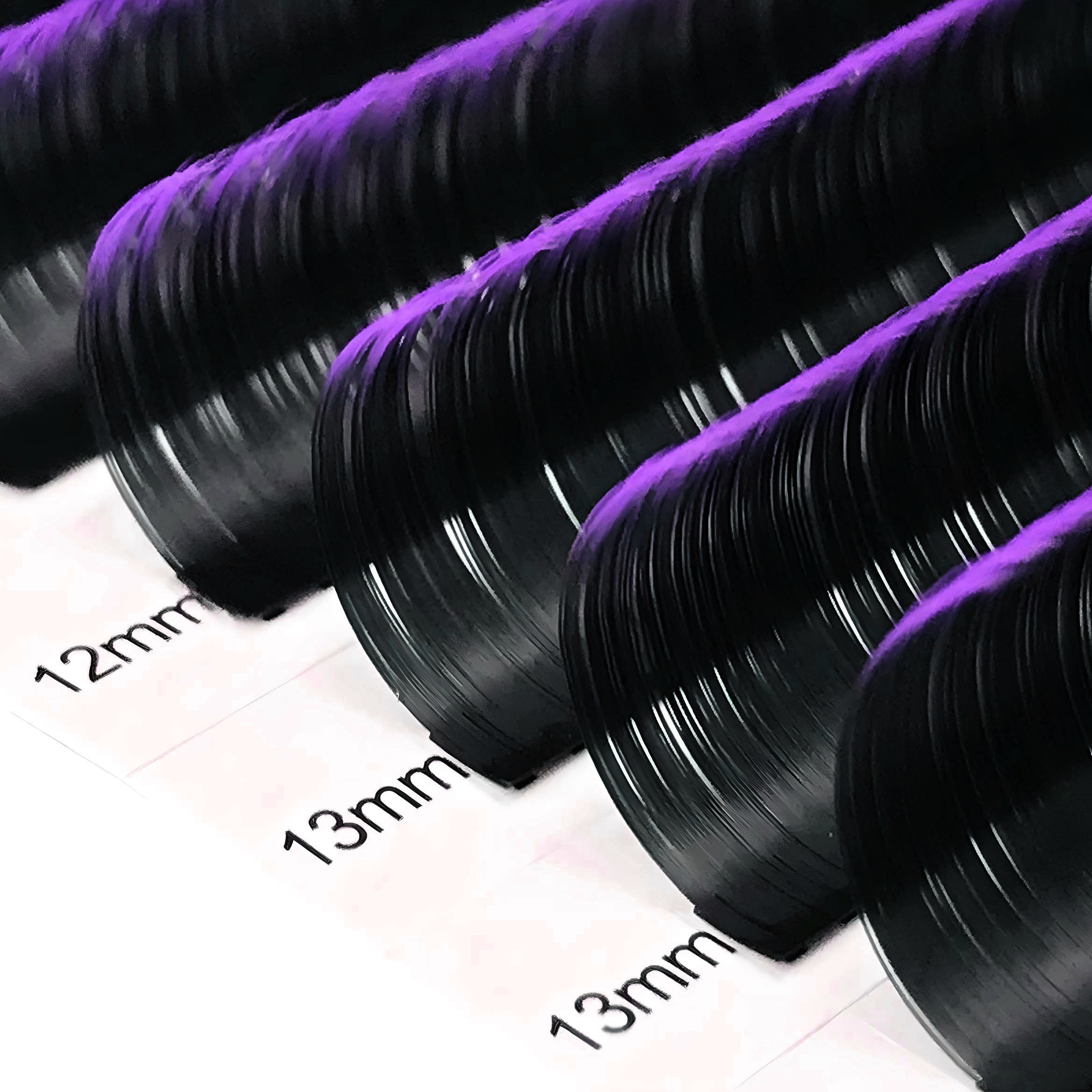 Posamezne barvne trepalnice 8–15 mm, D-kodrane, 12 trakov, ČRNO-VIJOLIČNE Celoten opis