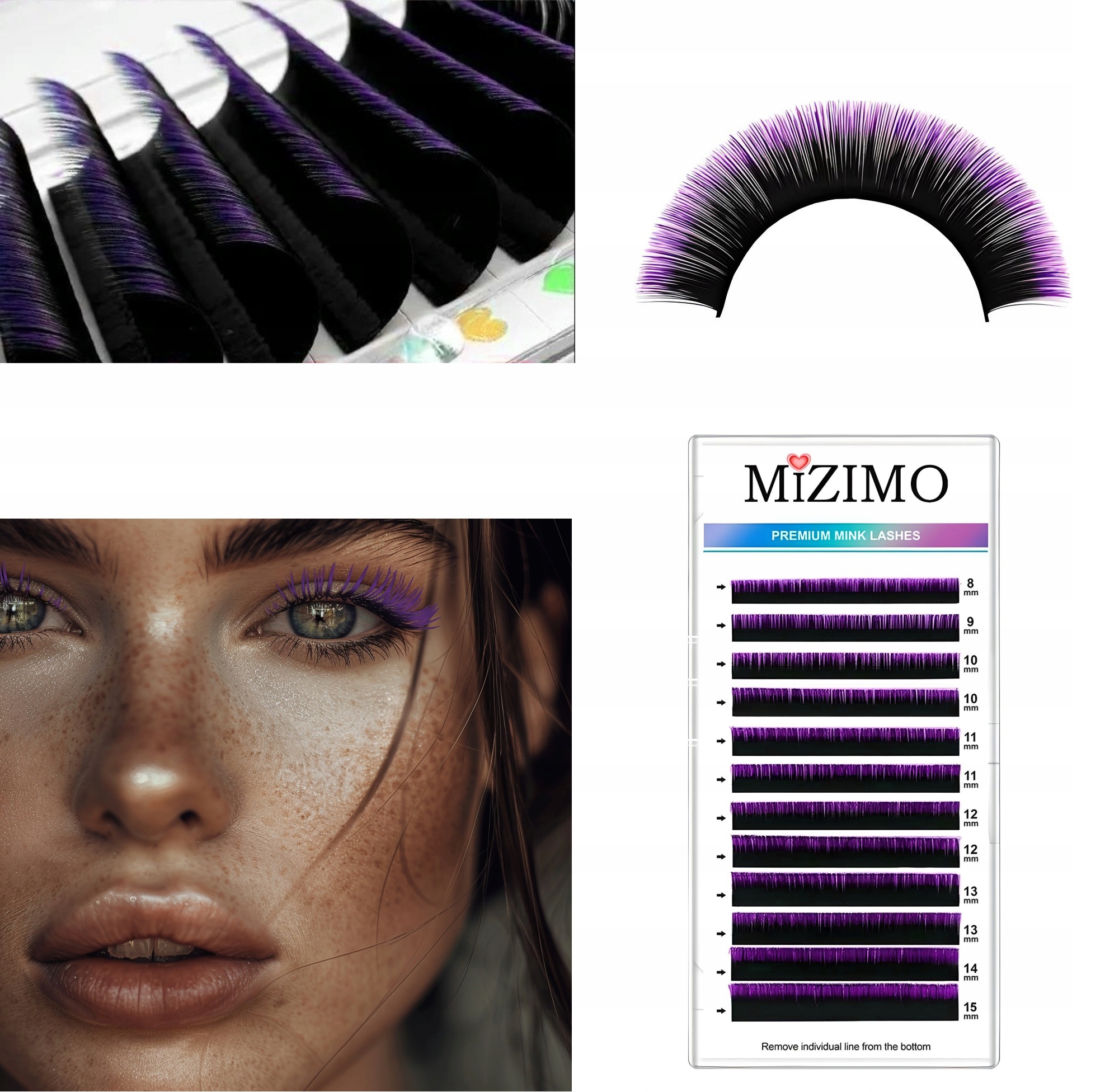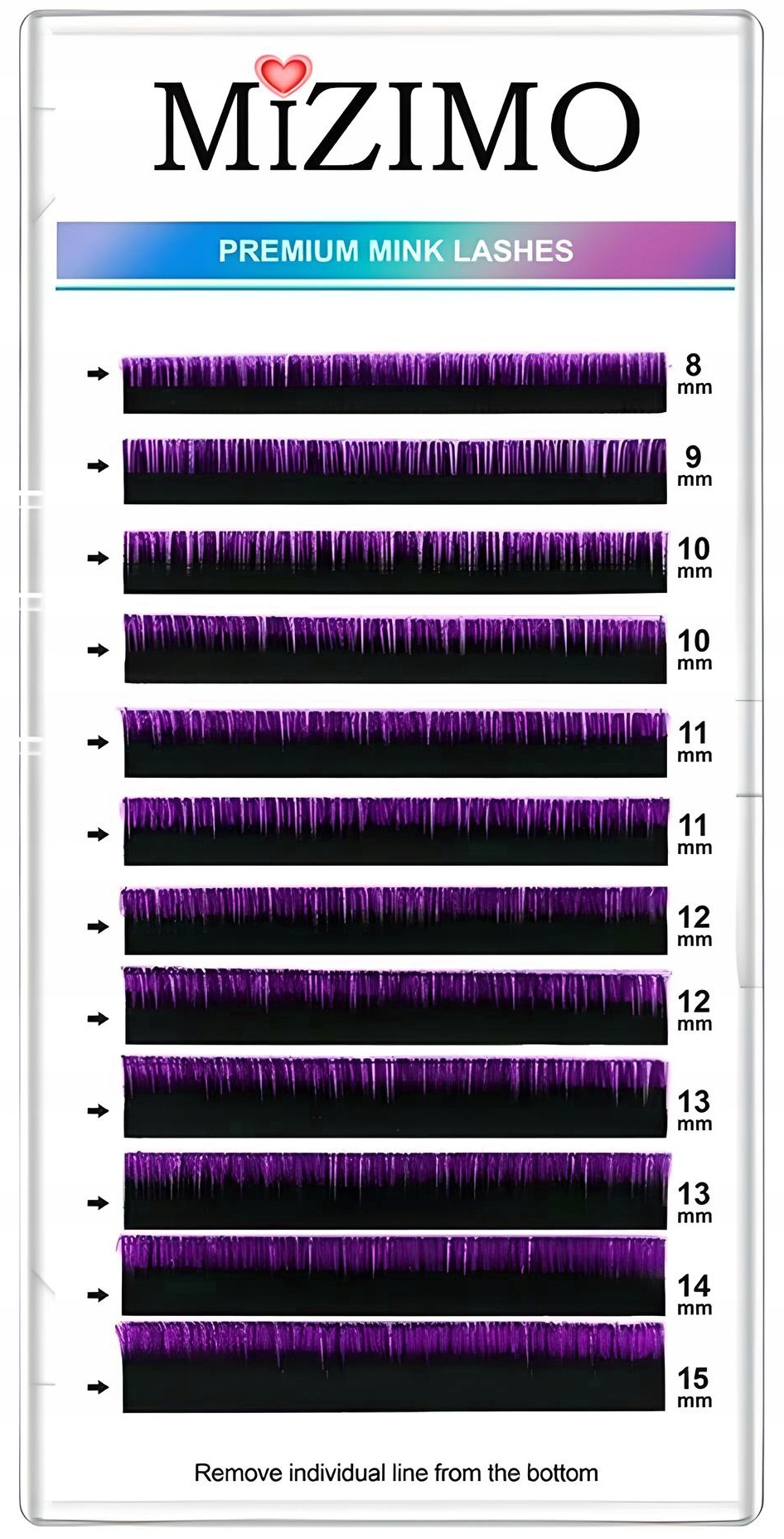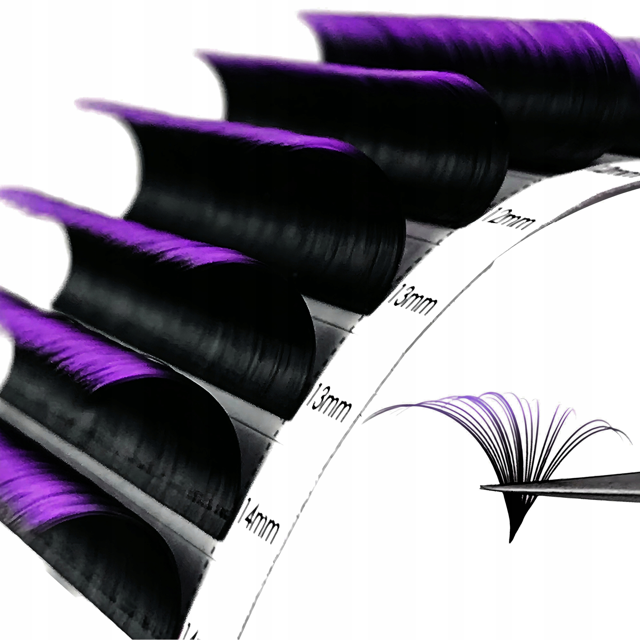 shumee Posamezne barvne trepalnice 8-15 mm, D-kodrane, 12 trakov, ČRNO-VIJOLIČNE