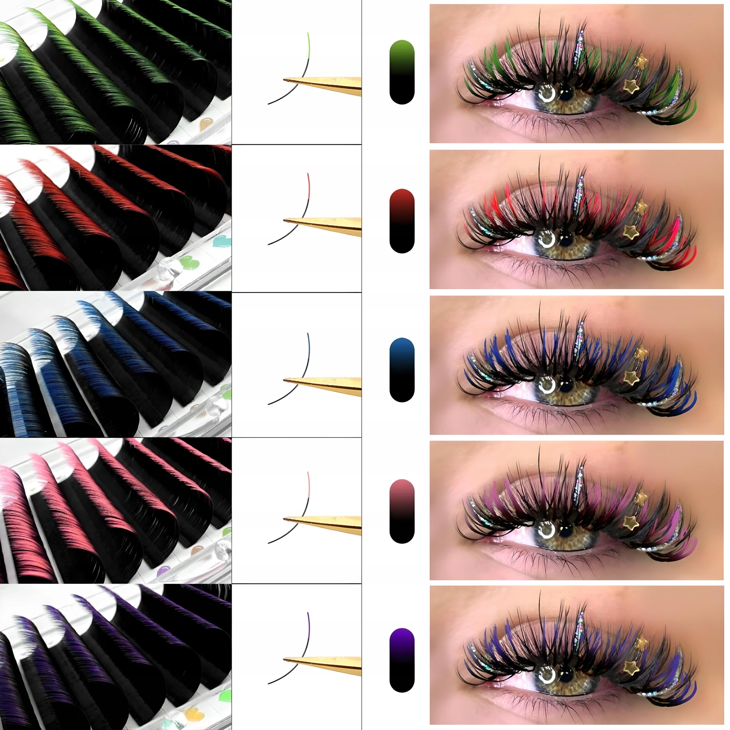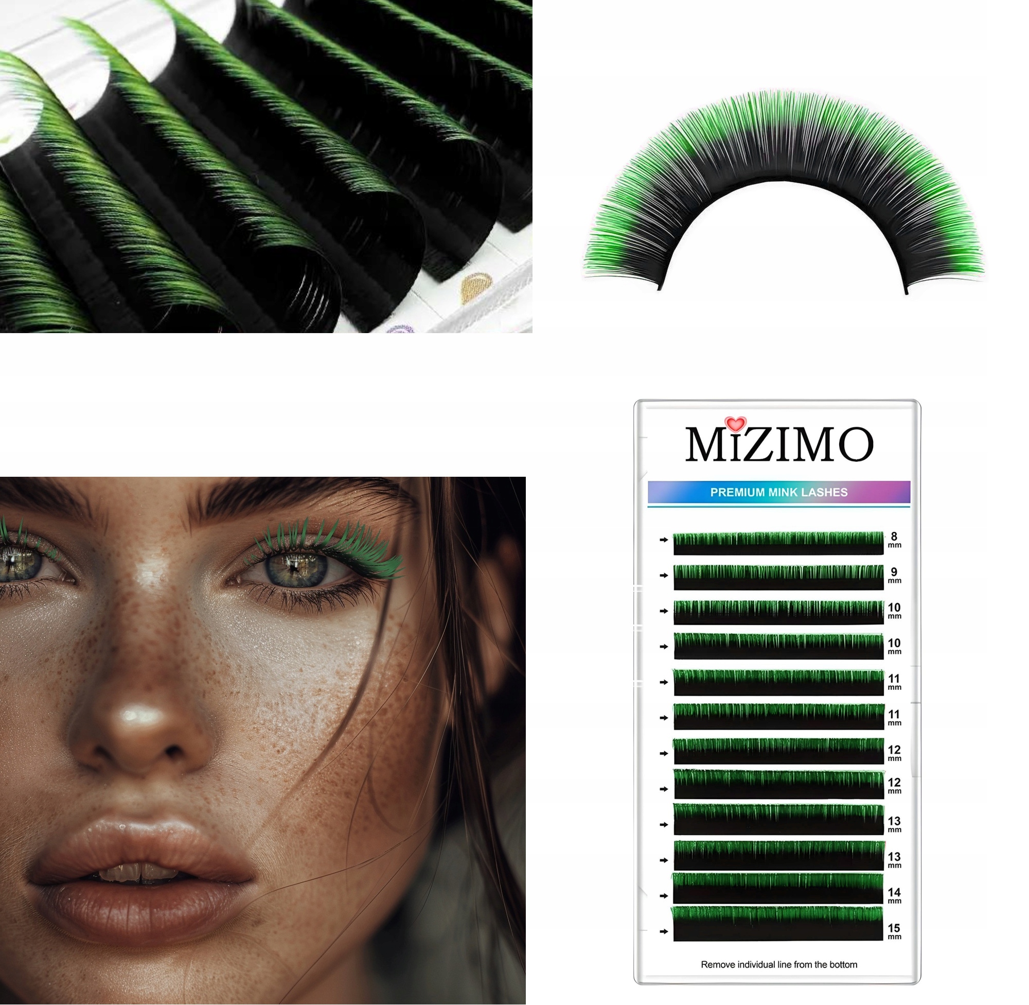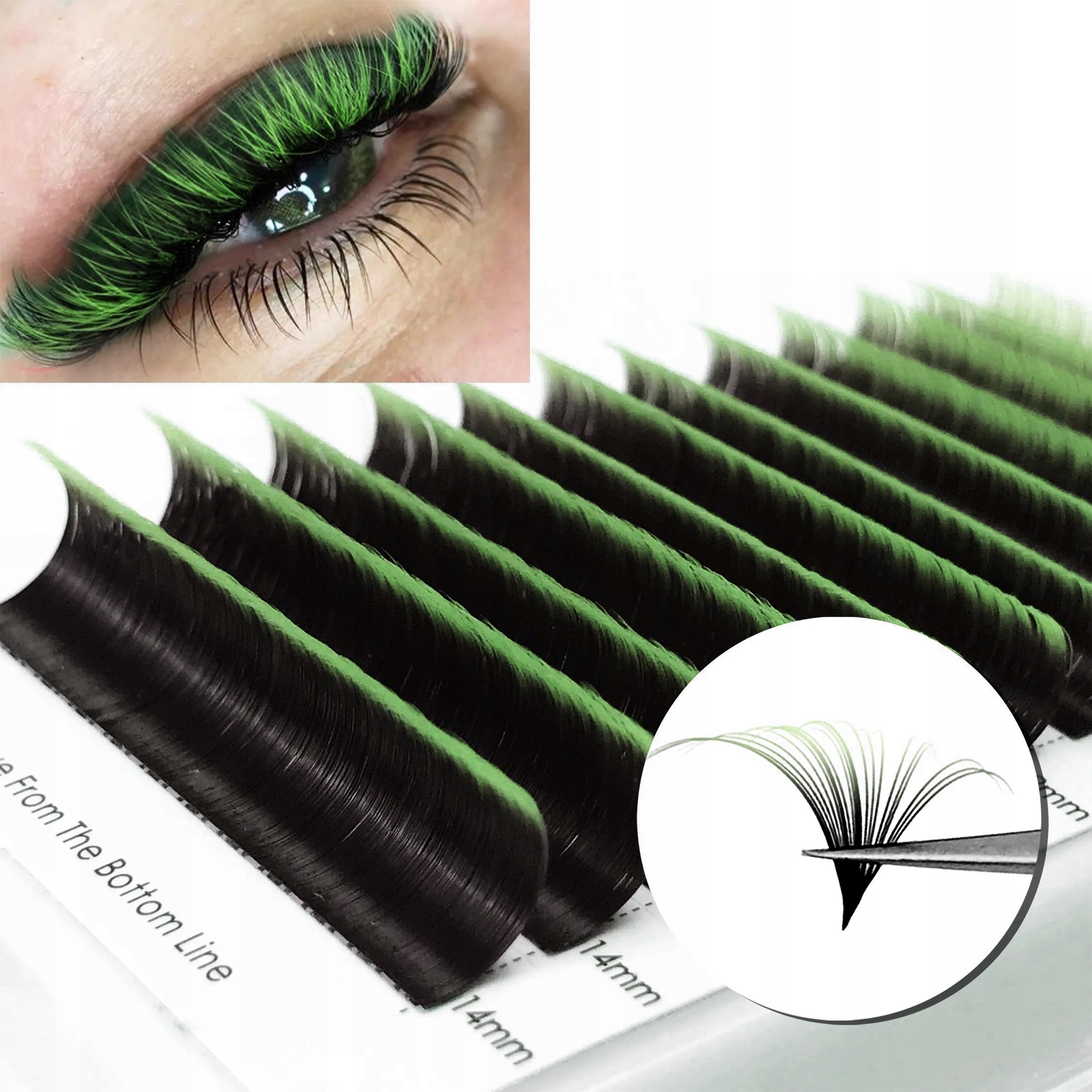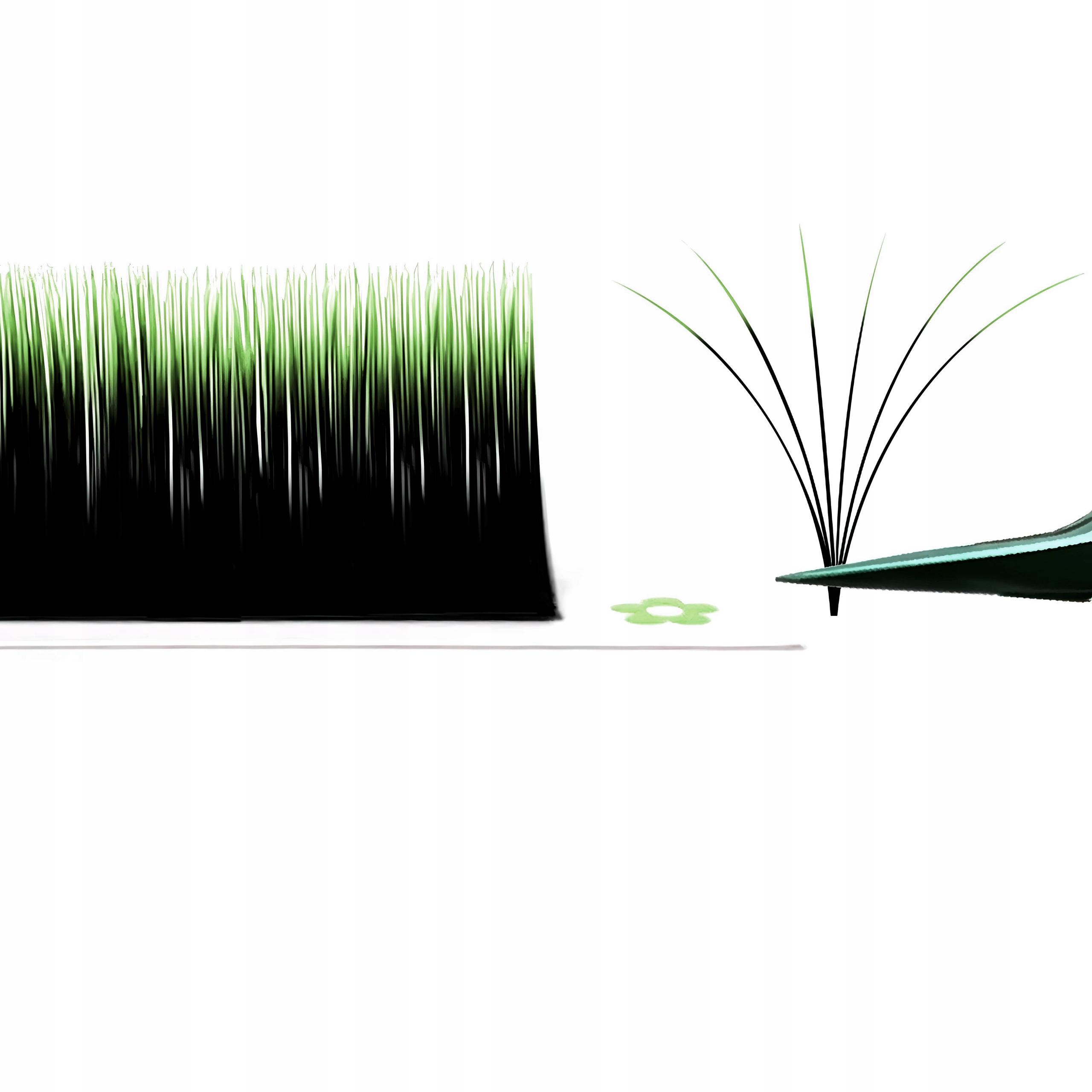 Posamezne trepalnice 8–15 mm, D-kodrane, 12 trakov OMBRE ČRNO-ZELENE Celoten opis