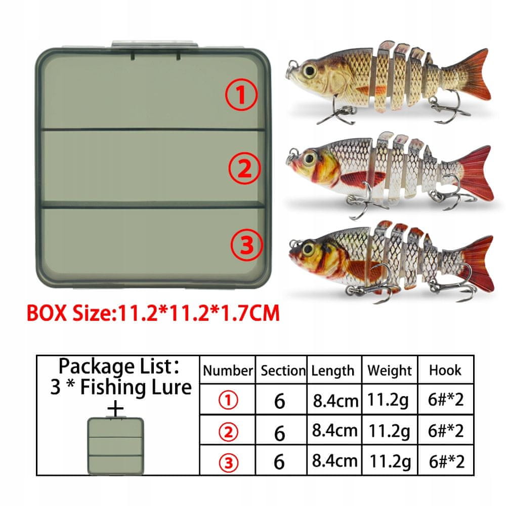 Senzacionalen komplet šestmodulnih voblerjev z neverjetno realističnim delovanjem v vodnem stolpcu. Izjemno učinkoviti za velike primerke.