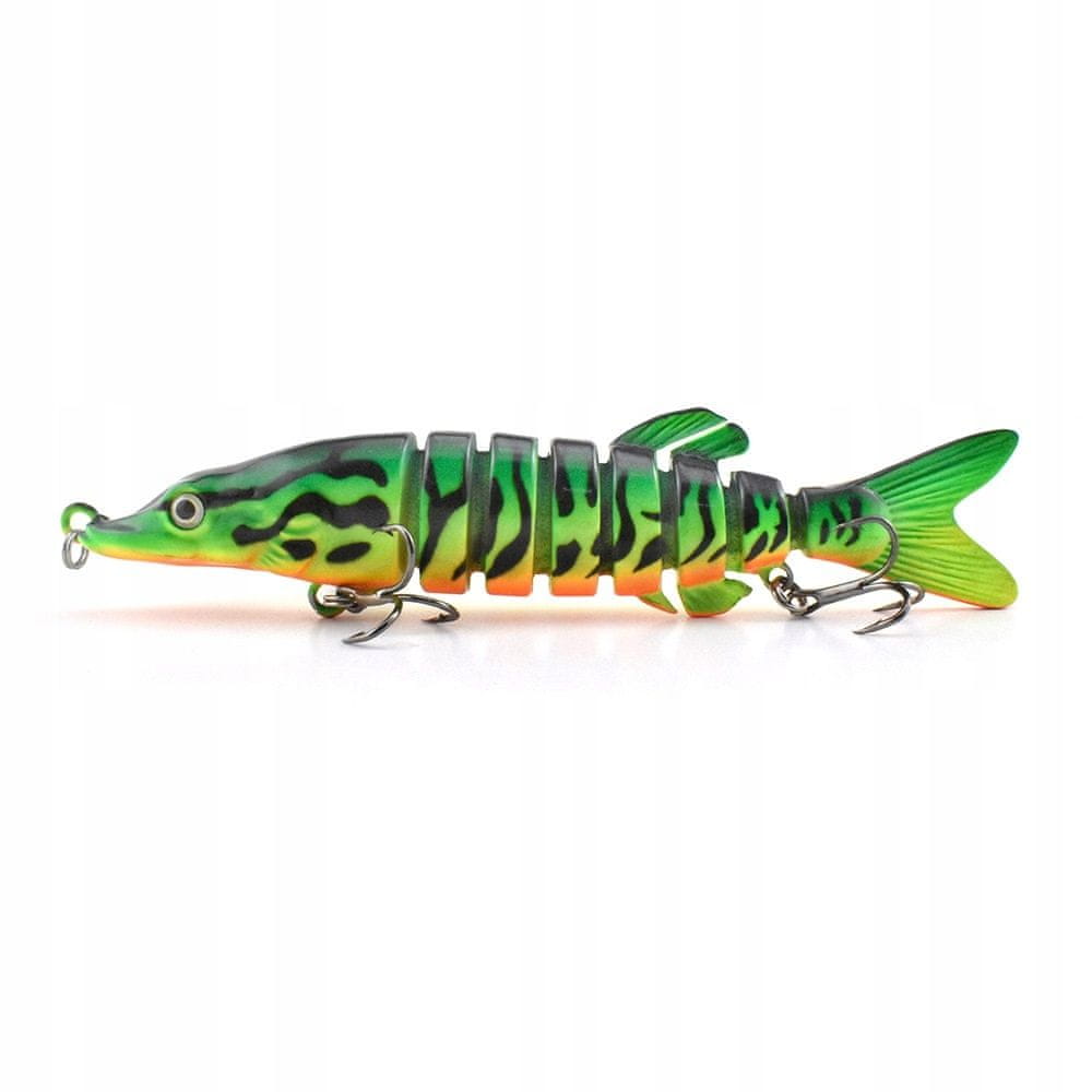Predstavljamo vam visokokakovostno segmentirano vabo, ki posnema videz ščuke. Ta vaba je zasnovana tako, da s svojo realistično predstavitvijo v vodi privablja velike plenilce.