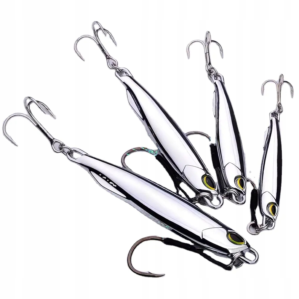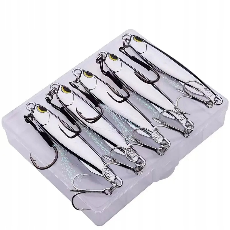 • Trnki: Opremljeni z ostrimi trnki s tremi kraki in pernatim jig trnkom, ki dodatno vabi ribe k prijemu.
