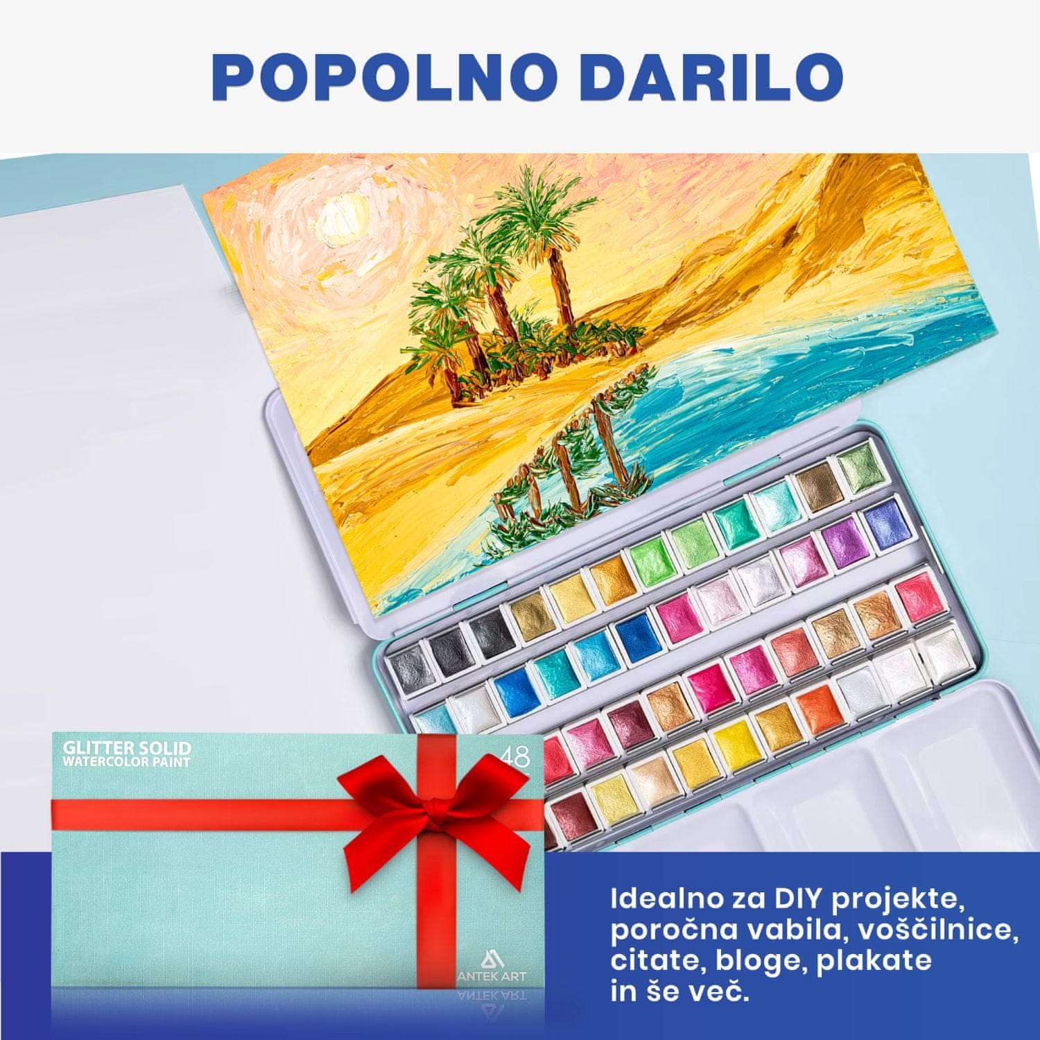 ANTEK ART Akvarelne barve - 48 bleščečih barv umetniške kakovosti
