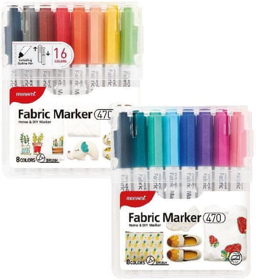 • flomastri za enostavno barvanje in gradacijo po tekstilu, – brez likanja, barva ostane po pranju obstojna, – za risanje in barvanje tekstila, kot so majice, eko torbe itd., – vključuje 15 barvnih flomastrov in en črn flomaster s fino konico debeline 1,3 mm za risanje obrisov na tekstilu …