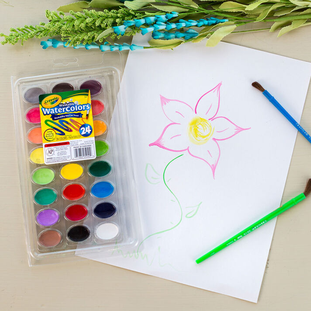 shumee Akvareli Crayola 24 barv pralnih šolskih akvarelnih barv za otroke