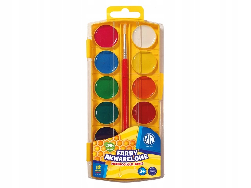 Akvarelne barve Honey Astra 12 barv – premer 25 mm Celoten opis