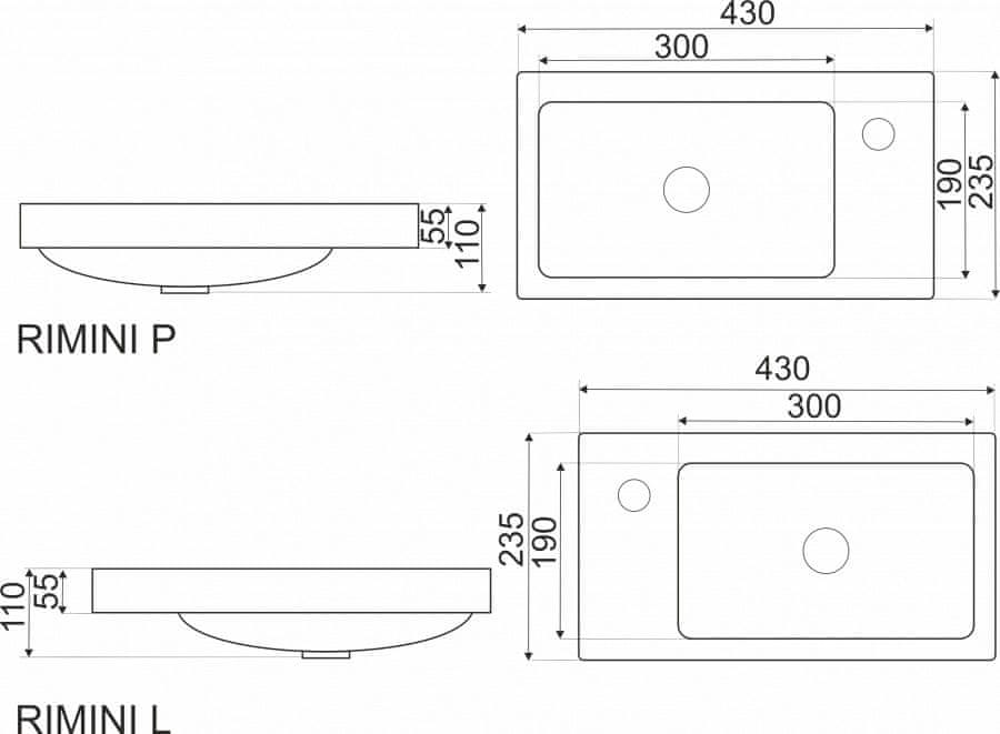 KERRA Umivalnik RIMINI D beli 430x235x110 mm