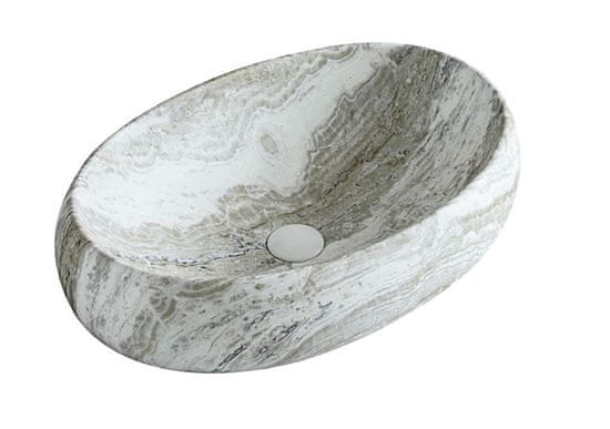 Umivalnik siv marmor S6SSI1 je nadpultni umivalnik ovalne oblike, ki s svojo mehko sivkasto marmorno teksturo ustvarja občutek naravne umirjenosti in sodobne estetike. Prefinjen kamenit videz, ustvarjen z napredno tehnologijo vodnega transfer tiska, poskrbi za izjemno realističen izgled, ki se odlično vklopi v različne stile opreme – od klasičnih do modernih.