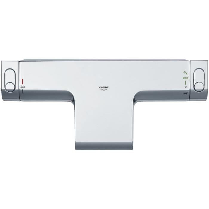 GROHE Grohtherm 2000 Termostatska mešalna armatura za kad/tuš 1/2 34174001 – Vidna stenska montaža – 100 % GROHE CoolTouch je sestavljen iz varnega ohišja + S-priključkov z rozetami CoolTouch – GROHE StarLight Chrome – GROHE Aqua Paddle – GROHE SafeStop se ustavi pri 38 °C – Omejevalnik temperature GROHE SafeStop Plus do 43 °C