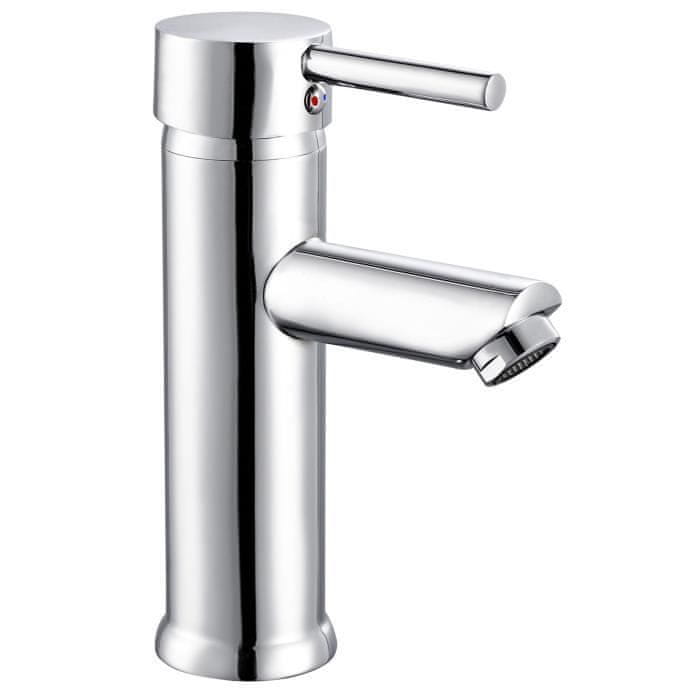 ROUSSEAU Kromirana armatura za umivalnik Dover – Mehanizem: keramični vložek Ø 40 mm – Varčevanje z vodo: eco-stop čep + omejitev pretoka perlatorja – Ročaj: kovina – Telo: medenina – Izliv: fiksni – Dno: Ø 53 mm – Odvajanje: ročaj + odtočna plastika – Priključne cevi: nerjaveče jeklo F3 / 8 – Garancija proizvajalca: 5 let