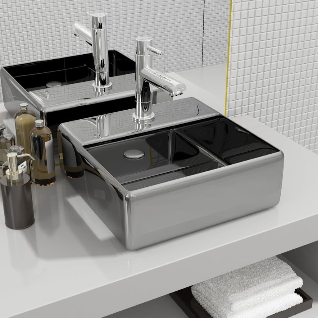 Vidaxl Umivalnik z odprtino za pipo 38x30x11,5 cm keramičen srebrn