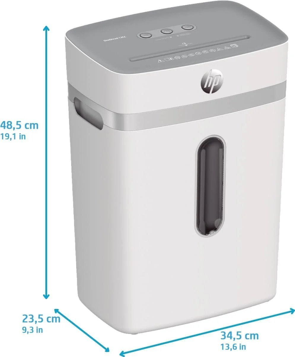Vhodna reža je široka 220 mm, vanjo pa lahko hkrati naložite do 12 listov A4. S križnim rezom 4 × 35 mm boste uničili vse občutljive podatke. HP OneShred 12CC ne bodo ustavile niti pisarniške sponke, sponke za papir ali kreditne kartice. Brez skrbi lahko neprekinjeno uničujete do 6 minut, nato pa se samodejno začne 50-minutno obdobje ohlajanja. Tako vam ni treba skrbeti za neželeno pregrevanje.