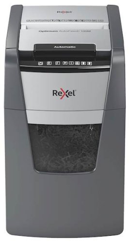 Rexel Optimum AutoFeed+ 130M samodejni uničevalec dokumentov lahko naenkrat povsem avtomatično uniči do 130 listov papirja s križnim razrezom zelo visoke varnostne stopnje P5. Uničeni delčki so velikosti 2×15 mm. Kadar uničujemo več dokumentov naenkrat samodejni uničevalci Rexel Optimum AutoFeed+ dokazano prihranijo do 98% časa, ki bi ga drugače zapravili za ročno podajanje papirja v standardni uničevalec. Vstavite sveženj papirja, zaprite pokrov in vaše delo je končano.