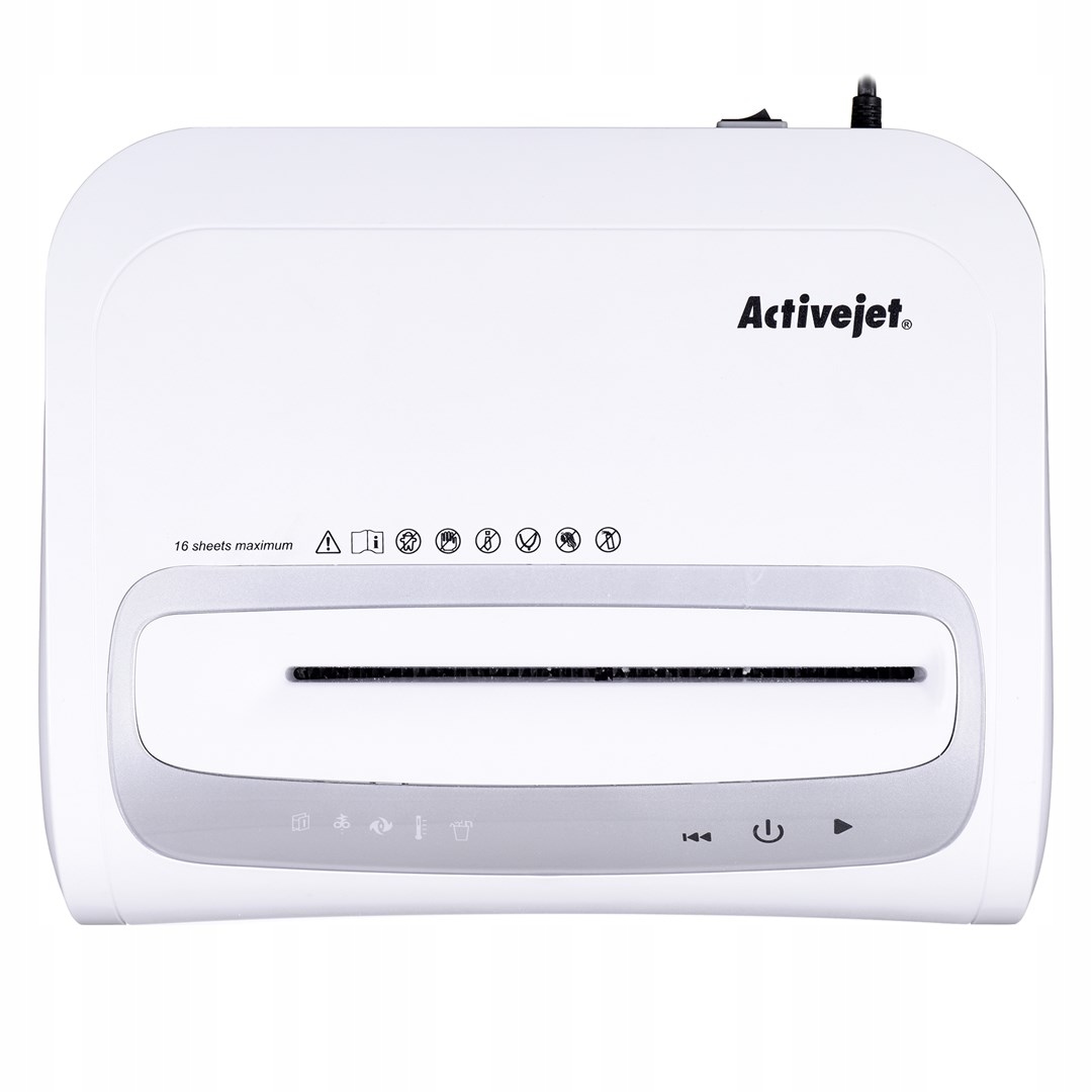 Drobilnik dokumentov Activejet 1602M Drobilnik dokumentov je nepogrešljiva naprava v vsaki pisarni. Učinkovito in hitro uniči zaupne podatke in dokumente, ki niso več potrebni, vendar ne smejo priti v napačne roke. Model 1602M je naprava, namenjena najzahtevnejšim strankam, večjim pisarnam in večjemu številu uporabnikov (priporočljivo za 7–9 oseb v pisarni).