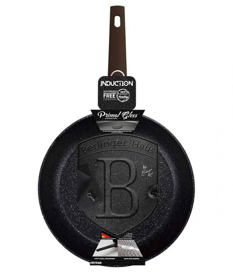 Lonci, ponve in dodatki iz serije PRIMAL GLOSS COLLECTION proizvajalca BERLINGE RHAUS so izdelani iz visokokakovostnega kovanega aluminija, prevlečenega v notranjosti s prevleko iz titana z zelo visokim koeficientom trdote. Črna zunanja ovojnica z učinkom „kladiva“. Te privlačne in modne jedi so standardno opremljene s SOFT TOUCH (silikonskim ročajem). Primerno za vse vrste štedilnikov: plinski, električni, keramični, halogenski, indukcijski. Sistem TURBO INDUCTION (segrejejo se zelo hitro) omogoča prihranek do 35% energije.