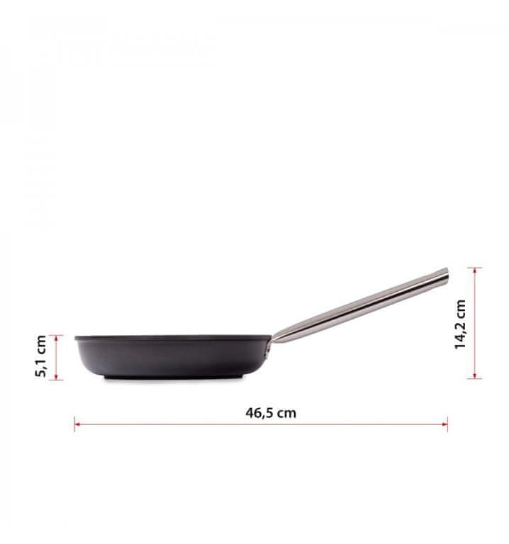 Ponev Chef iz vlivanega aluminija ima izjemno dolgo življenjsko dobo in je izjemno odporna na deformacije vseh vrst (toplotne, fizične…). Za odlične lastnosti proti prijemanju skrbi večplastni premaz iz titana ki NE VSEBUJE PFOA (teflona), SVINCA, KADMIJA. Zahvaljujoč aluminiju ponva izjemno dobro prevaja toploto, kar pomeni, da se hrana v njej segreva enakomerno ter zelo hitro – stene, kjer hrane ni, pa se ne pregrevajo pretirano in s tem se ostanki hrane na robovih ne prežigajo – hrana, ki jo pripravljamo je bolj zdrava in ima boljši okus.