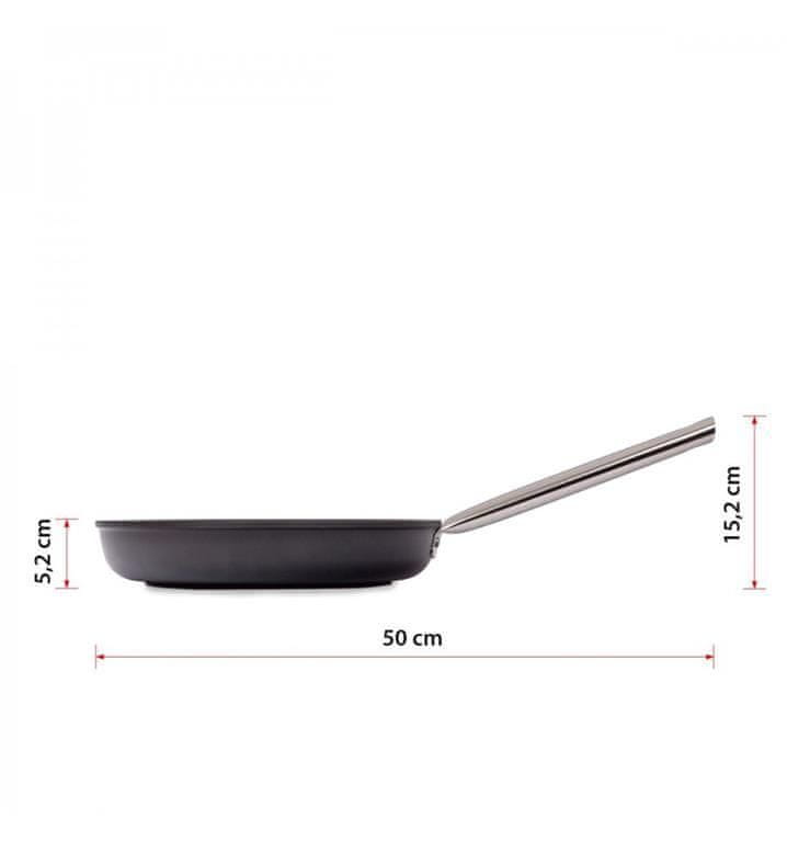 Ponev Chef iz vlivanega aluminija ima izjemno dolgo življenjsko dobo in je izjemno odporna na deformacije vseh vrst (toplotne, fizične…). Za odlične lastnosti proti prijemanju skrbi večplastni premaz iz titana ki NE VSEBUJE PFOA (teflona), SVINCA, KADMIJA. Zahvaljujoč aluminiju ponva izjemno dobro prevaja toploto, kar pomeni, da se hrana v njej segreva enakomerno ter zelo hitro – stene, kjer hrane ni, pa se ne pregrevajo pretirano in s tem se ostanki hrane na robovih ne prežigajo – hrana, ki jo pripravljamo je bolj zdrava in ima boljši okus. Zaradi inovativnega ročaja je ponva primerna tudi za segrevanje v pečici (do 260°C).