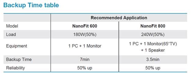 NanoFit UPS je kompaktna naprava, ki zagotavlja odlično zaščito opreme pred prenapetostmi in konicami. NanoFit bo v primeru izpada električne energije zagotovil stabilno napajanje in vam omogočil varen izklop priključenega računalnika. Vgrajen mikroprocesorski nadzor zagotavlja visoko zanesljivost. Ta UPS je idealen za uporabo v majhnih pisarnah in domovih. UPS lahko namestite tudi na steno.