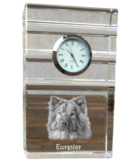 Artdog Eurasier, Eurasian - steklena ura s fotografijo, fotografija psa v kristalu, personalizirana stoječa ura za pisarno Art-Dog
