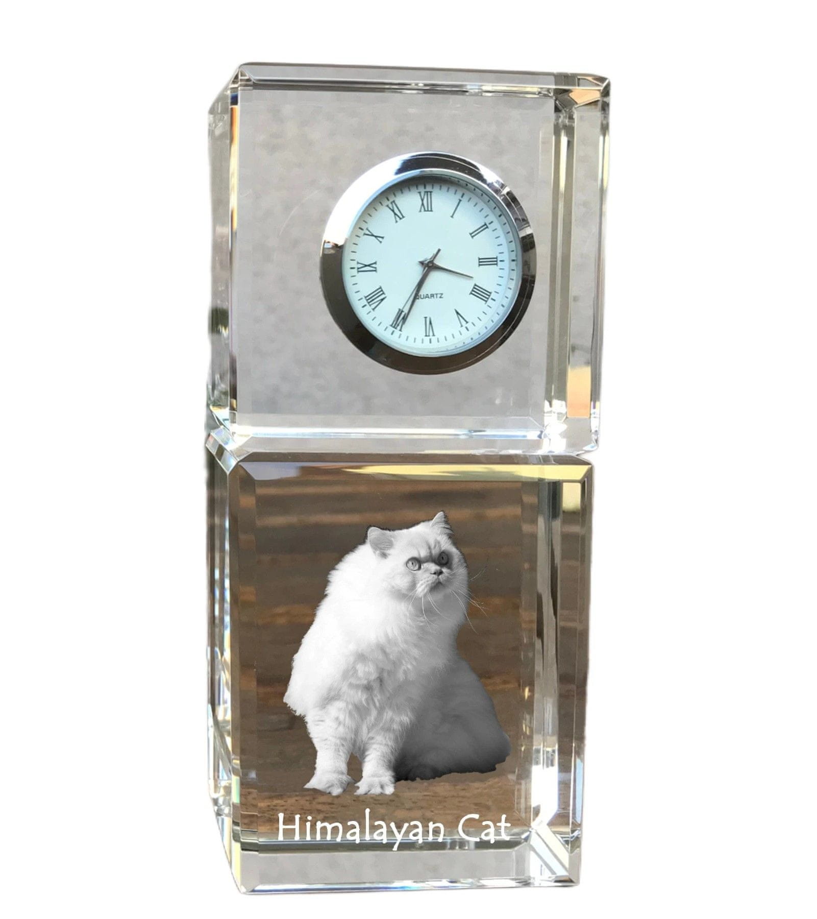 Artdog Himalayan - kristalna ura s fotografijo, fotografija mačke v kristalu, personalizirana namizna ura Art-Dog