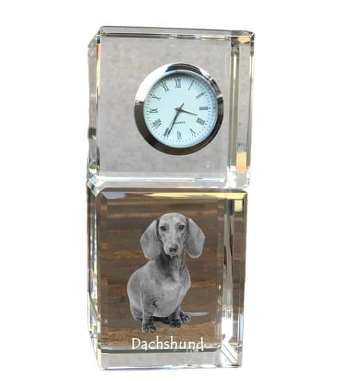 Artdog Jazbečar - kristalna ura s fotografijo, fotografija psa v kristalu, personalizirana namizna ura Art-Dog